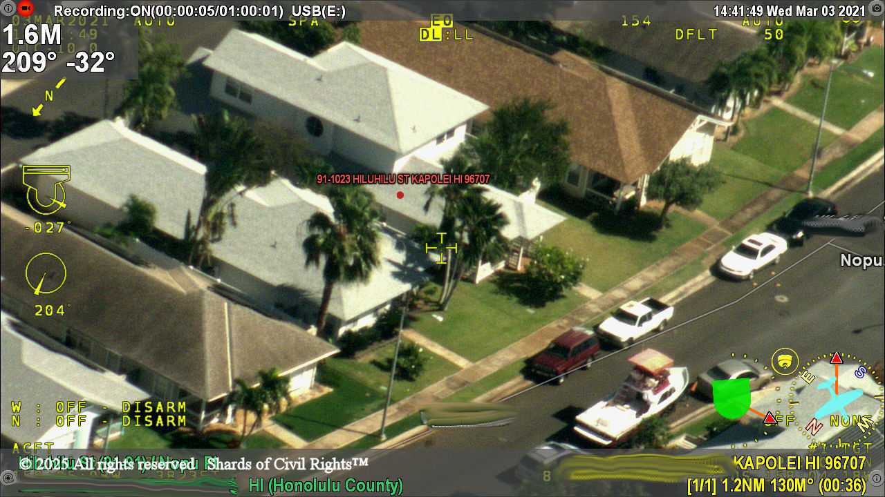 (5) Agencies will spare no expense on videotaping and surveillance. Just like in the movies . . . (This is a helicopter photo of our homestead in Kapolei. No, nothing’s going on . . . no drugs, no guns, no illicit activity. It’s just a house. Did you know that helicopter surveillance costs approximately $10,000 per hour?)